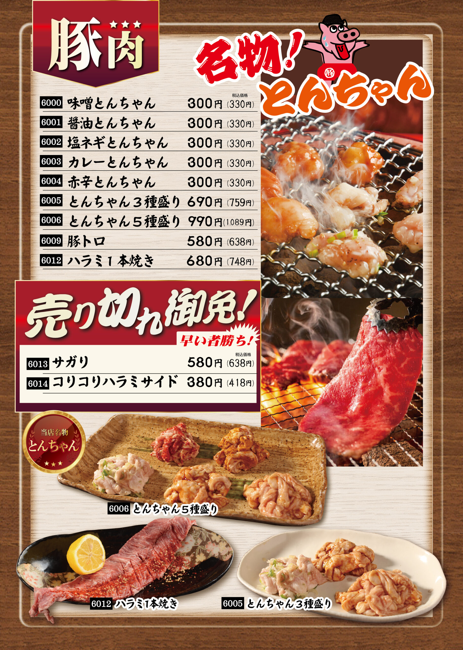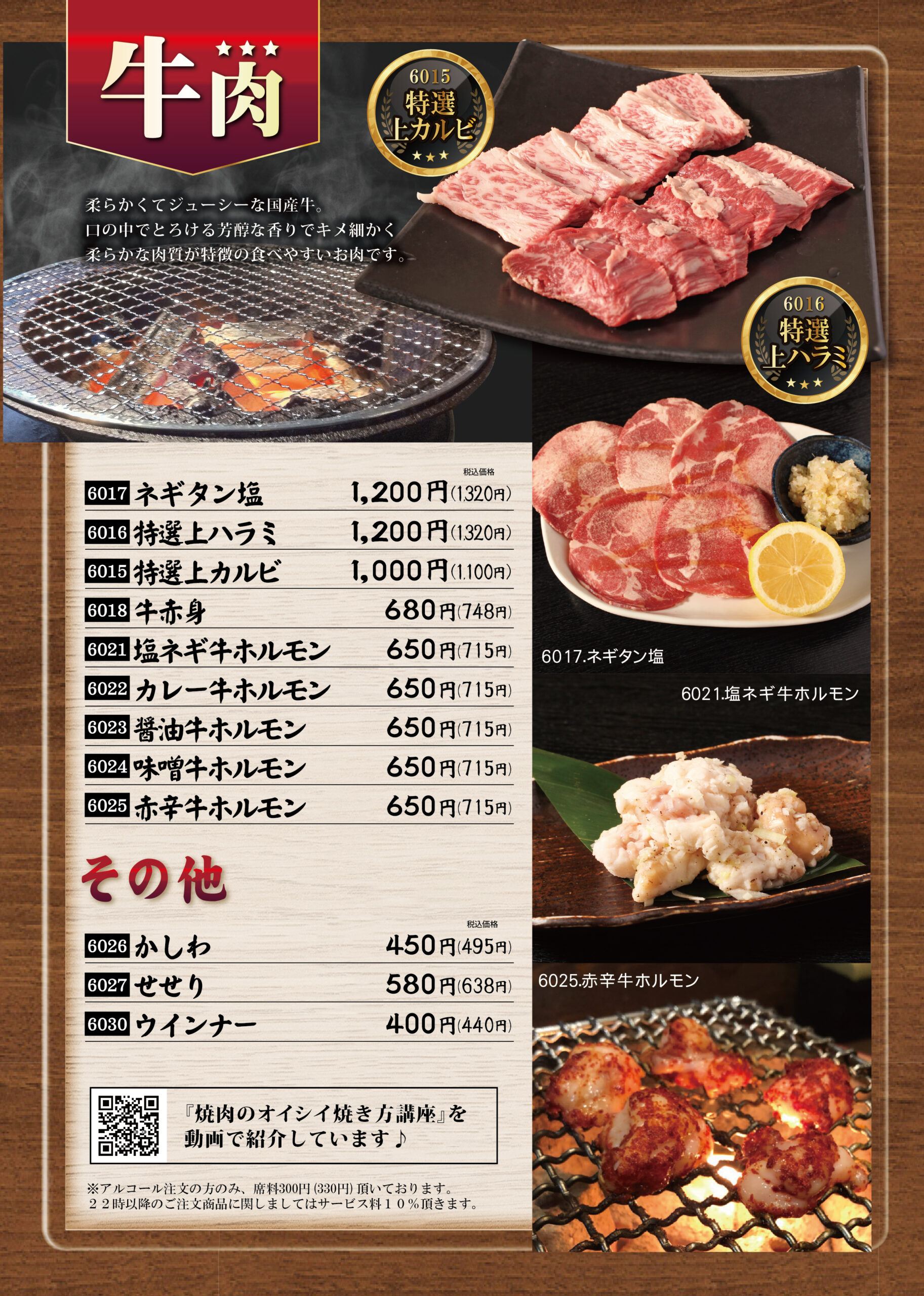 ※焼肉は専用席になりますので、ご希望の場合はお電話にてお伝え下さい。