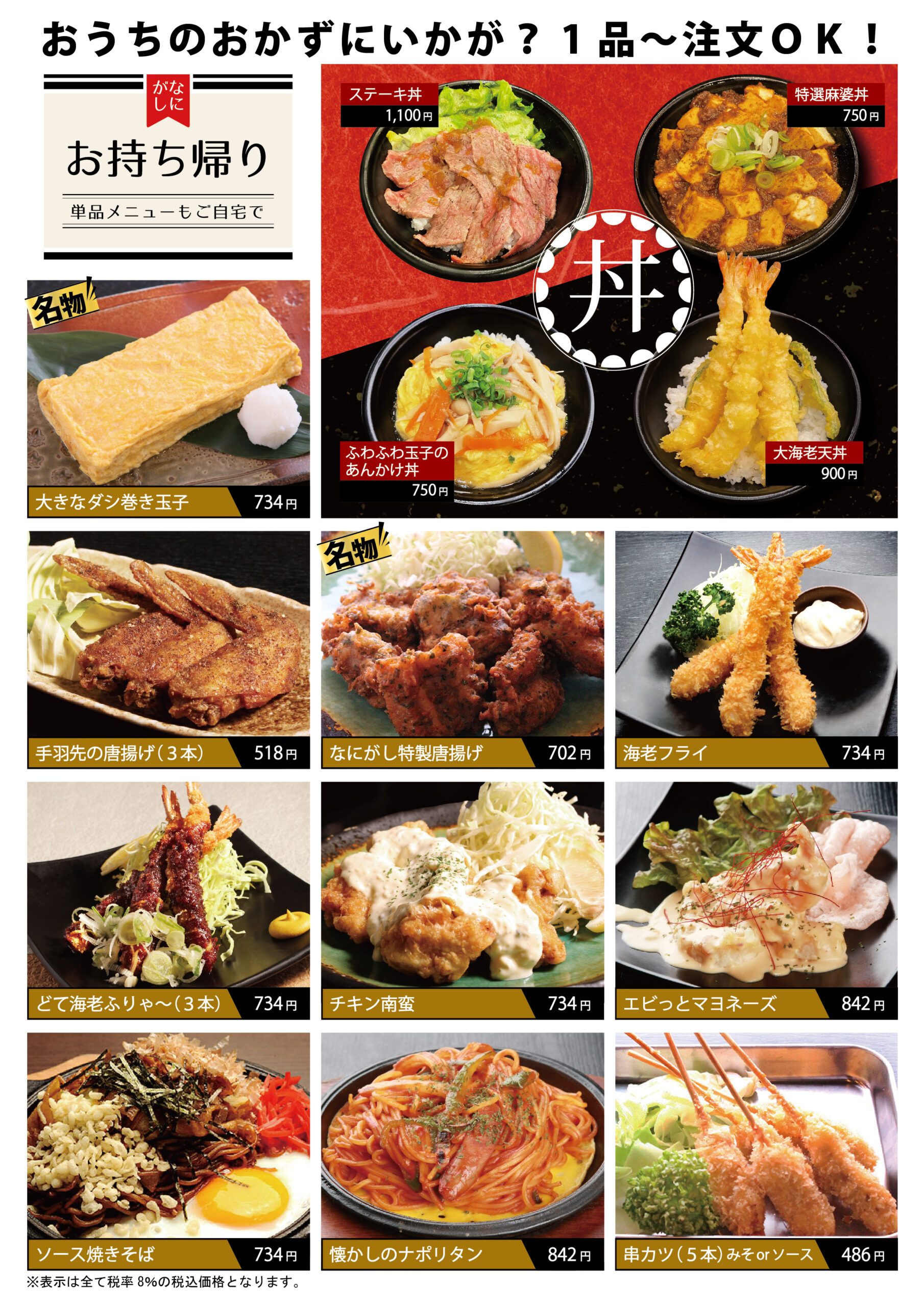 ※その他、メニューなんでもテイクアウトOK!詳しいメニューは、各店舗メニューをご覧ください。